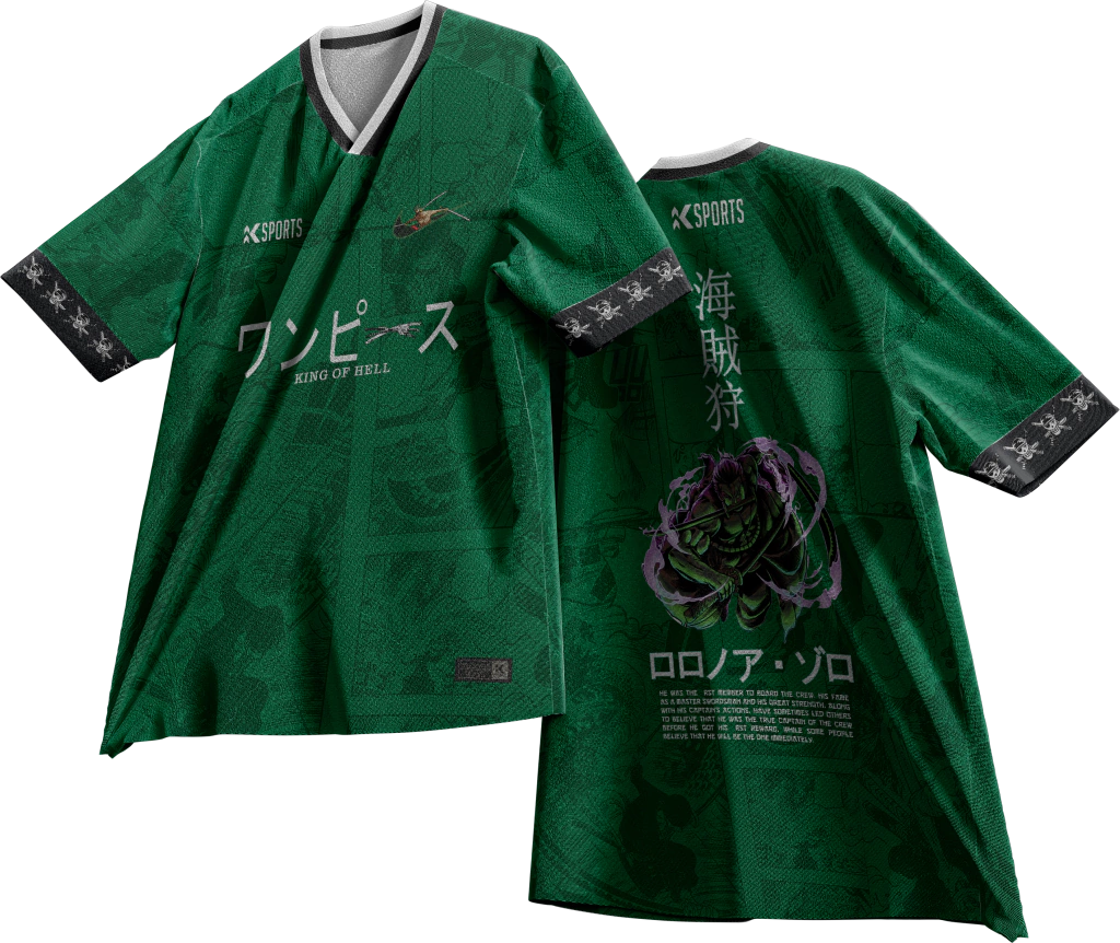 Apresentamos a Roronoa Zoro Jersey, uma camisa de alto desempenho inspirada no lendário espadachim de One Piece. Perfeita para quem busca combinar estilo, força e funcionalidade em suas atividades esportivas.